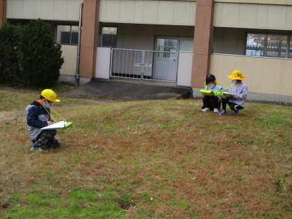 冬見つけにでかけました。秋にはたくさんあった葉っぱやたくさんいた虫がおらず驚きました!でも、いないということも立派な気づきだと知ることができました。よく見ると、桜のつぼみが少し膨らんでいるなど春に向けての準備も始まっていることに気づくこともできました。