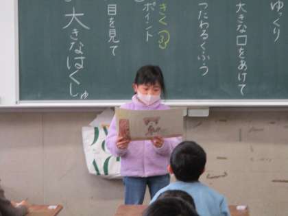 今日は、音読発表会でした。練習した成果を発揮してとても上手に発表することができました。聞く態度もすばらしく、大きな拍手をすることもできました。