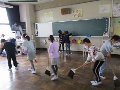 掃除を上手に行うことができるようになりました。細かいところまでしっかりとほうきで掃いていきます。また、班長さんを中心に始まりと終わりのあいさつまで自分たちでパッチリです!
