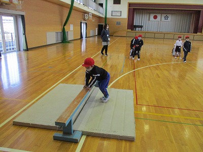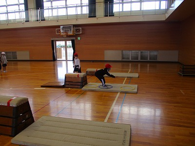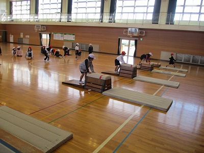 今日は、屋内運動場で体育がありました。跳び箱を用いたいろいろな技に挑戦しています。どんどん上達している姿が見られ、毎週頑張っています。