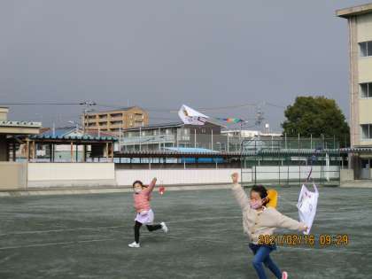 終わったら「たこあげ、初めてやって楽しかった。」「高く飛ばすこつがわかったよ。」と話してくれました。