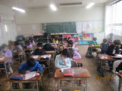 時計の読み方やひっ算、かけ算など、一年間勉強してきたことをもう一度見直しました。2年生の学習内容をしっかりと身に付け、元気に3年生に進級してほしいと思います。