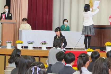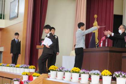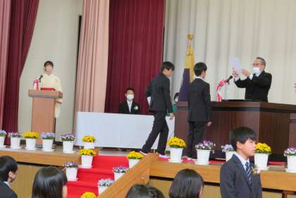 卒業式が始まりました。今日の日のために、何度も練習を重ねてきました。一人一人修了証を手渡された卒業生の表情は、誇らしげです。6年間よく頑張りました。