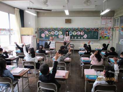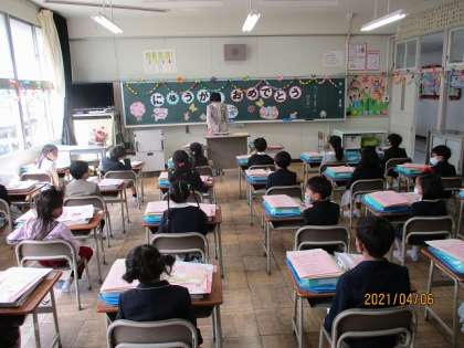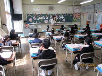 各クラスで担任の先生の話を聞いたり、大きな声で返事をしたりして初めての小学校での1日を過ごしました。