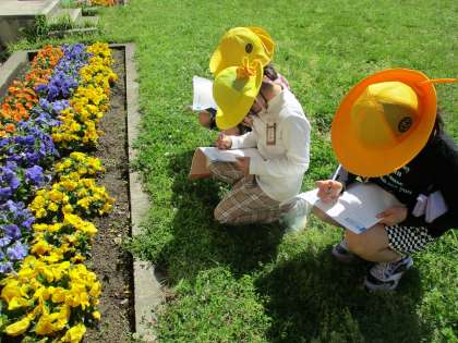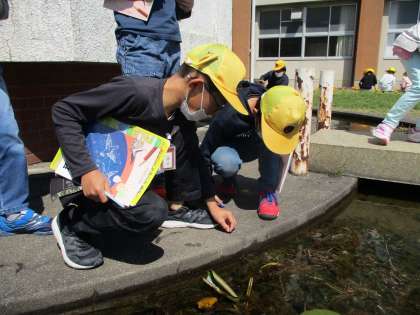 理科では希望の泉などで生き物見つけをしました。暖かい季節になり、冬では見ることができなかった生き物や植物を観察することができました。4年生の理科では1年を通して生物を観察します。お家の近くでも、ぜひ四季の変化を探してみて下さい。