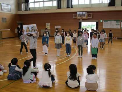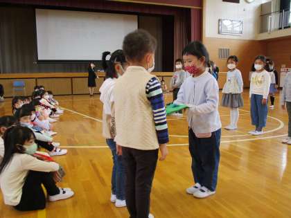 1年生を迎える会で、2年生は「学校たんけん」についての発表をしました。校長室、保健室、なかよしホールをクイズ形式で紹介しました。昨年度収穫した朝顔の種もプレゼントしました。とても上手に発表できました。たのもしいお兄さん、お姉さんの姿でした!