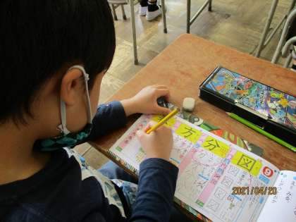 今日は、国語の時間に新しい漢字を習いました。読み方や書き順を確認して、練習をしています。子どもたちは、姿勢よくていねいに書くことができました。2年生では、160字の漢字を新しく習います。頑張って覚えていきましょう!