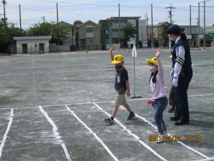 信号をよく見て横断歩道を渡ったり、左右が見えづらい道を手を挙げながら歩行したりと、安全に気を付けて歩くことができました。