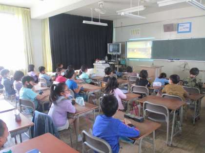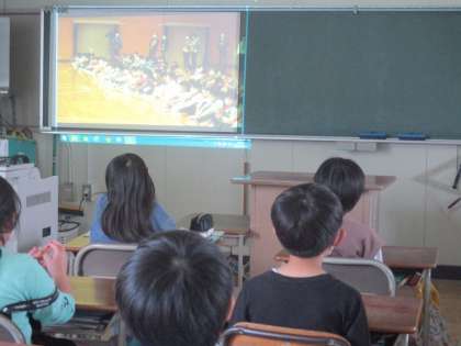 4.30 学活「1年生をむかえる会のビデオみたよ」(3年生)
