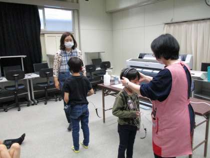 初めての聴力検査がありました。緊張しながらも集中して音を聞くことができました。