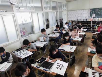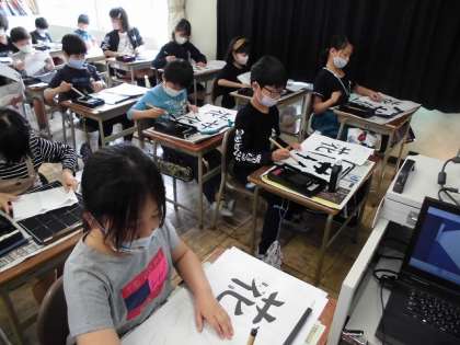 書写の学習で「花」の清書をしました。GWがあったので2週間ぶりの書写となってしまいましたが練習で覚えたことを再度確認しながら筆使いに気を付けて書くことができました。本日も服装を気にかけてくださり有難うございました。来週は硬筆の学習をします。