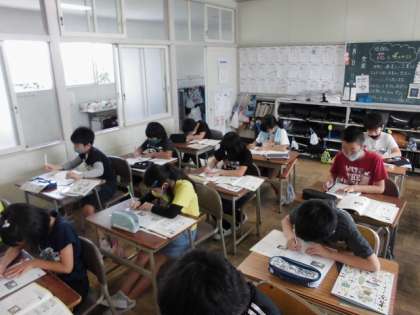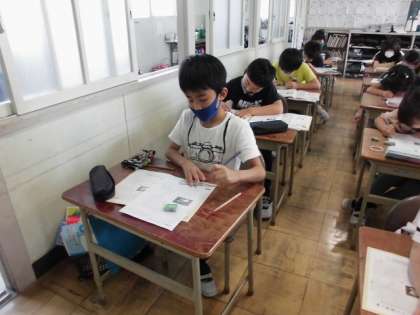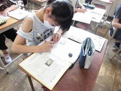 読み手に内容が伝わるように資料作りをしました。書き出しは揃っているか、文字の大きさがバラバラになっていないか、一文字ずつ確認しながら丁寧に試写しました。書く姿勢もさすが4年生です!!