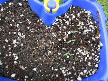 ミニトマトの芽が出ました。たくさん出た中で、元気のいいものを3つ残して間引きをしました。ぐんぐん育ってほしいです。