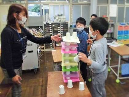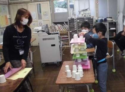 コップの裏のABCと合わせていくと、タワーが出来ました。