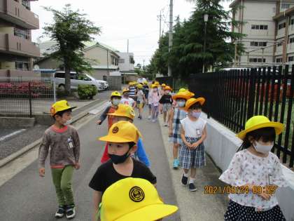 短い距離でしたが、きちんと並んで楽しく歩くことができました。
