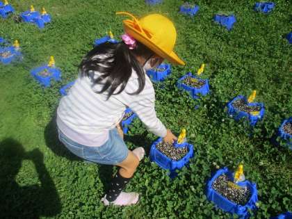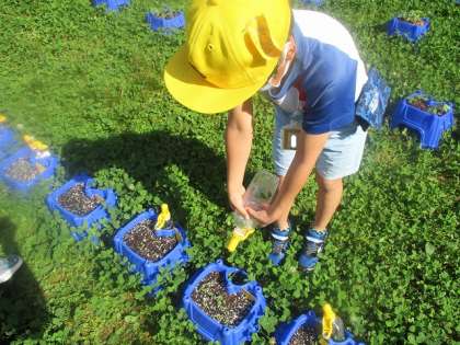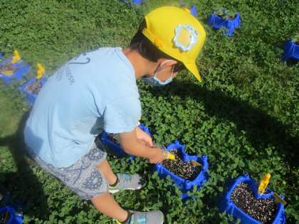 ミニトマトがぐんぐんと育つように,晴れた日には毎朝,水やりをしています。みんなが育てたミニトマトが収穫できるようになるとよいですね。これからも愛情を込めて,世話をしていきましょう。