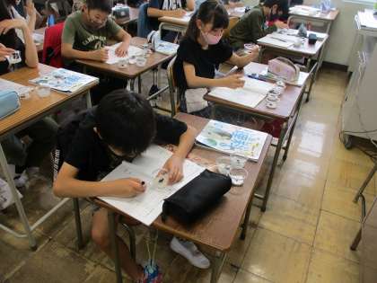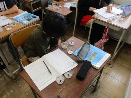理科の授業では、いんげんの種を使って、観察を行っています。どんな条件で発芽するかを考え、まとめることができました。次は、成長するための条件を観察します。どんな結果になるか楽しみですね。