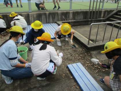 今日は学年でプール清掃を行いました。プール内やプールサイドの汚れをデッキブラシで落としたり、詰まってしまった側溝のゴミや泥を取り除いたりと、時間いっぱい学校のために働く姿が頼もしかったです。6年生のみんな、ありがとう!