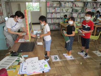 6.7 国語「図書館たんていだん」 公開日 2021/06/08 更新日 2021/06/08 3年 図書館のしくみや使い方の話を聞いた後、読書週間の本を借りました。待ちに待った開館にみんな大喜びでした。