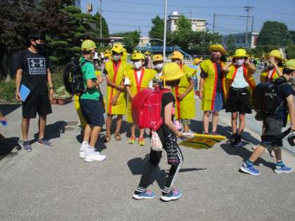 今日は少しでも早く集まれるよう、昇降口で「くつをはいたら、自分の場所に移動しましょう」と声かけをしました。代表委員の活躍で、いつもよりも早く集まることができ、スムーズに下校することができました。今後も全校児童で向山小をより良くしていきたいですね。