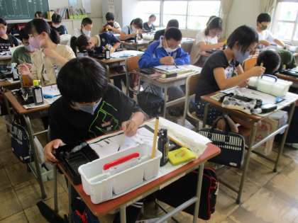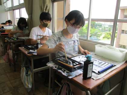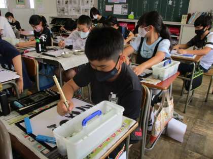 図画工作の授業で墨と水を使った作品作りに取り組みました。水を多く使って「ぼかした」表現や水の量を調節して「かすれた」表現を作品にいかしました。試行錯誤を繰り返しながら、自分のイメージする作品になるように活動することができました。
