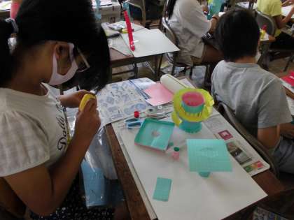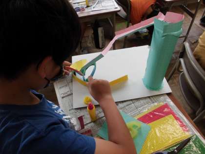 先週よりも進化をし完成に近づけるように取り組みました。材料や用具の使い方を工夫して楽しいコースを作っていました。