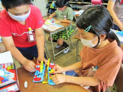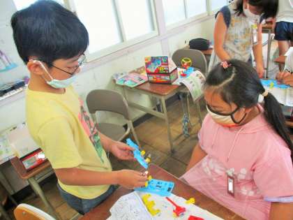 最後は、乾電池で動くおもちゃを作り、乾電池のつなぎ方を工夫して速く走るようにして、楽しみながら性質を確認することができました。