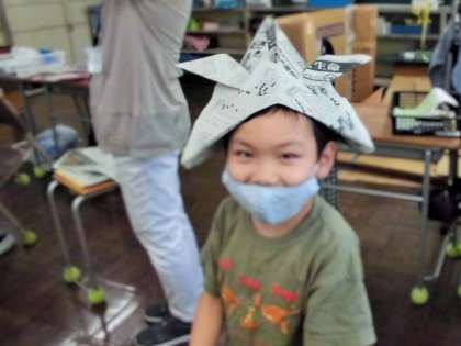 飛行機、かぶと、花、紙鉄砲や、コマまわしにも、挑戦しました。