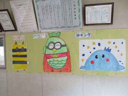職員室前に今年のエコキャラクターを掲示しました。