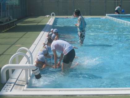 いよいよ今日から夏休みが始まりました。今日は、泳力向上指導1日目でした。朝から気温・水温ともに31度!うだるような暑さの中、どの子も、自分の目標に向かって一生懸命頑張っていました。学年の水泳目標を1日目でクリアした子もたくさんいました。