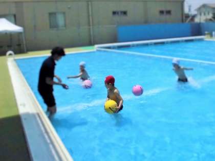 全員、顔や頭を水の中に入れることができ、石拾い、くぐりぬけなどで遊びました。
