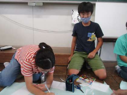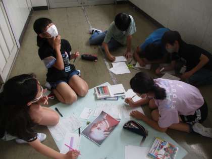 音楽の授業では、前回パソコンで調べた偉人についての情報や逸話などを大きな紙にまとめる学習をしました。レイアウトや乗せたい情報を友達と話し合いながら楽しくまとめることができました。