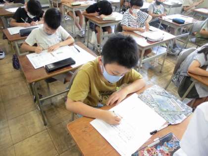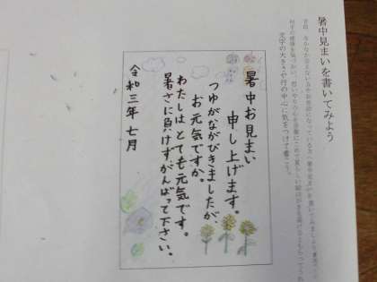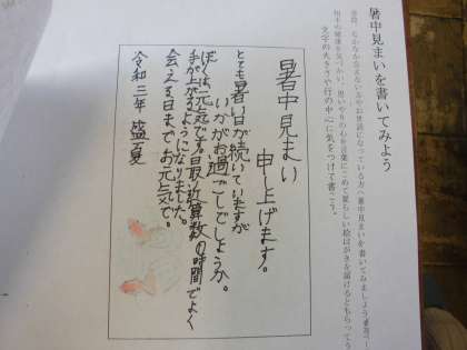 今日の書写は「暑中見舞いを書こう」のめあてで暑中見舞いを書きました。