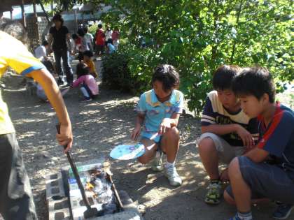 野外体験学習も最終日の朝を迎えました。今日の朝食は自分たちでつくったホットドッグです。