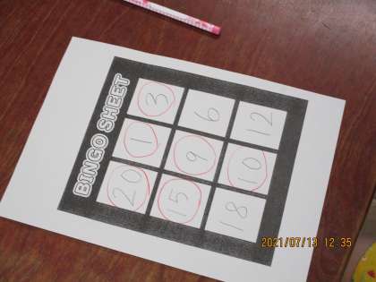 1から20までの数字の言い方を学び、最後にビンゴをしました。