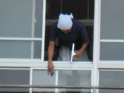 今日、業者の方が、窓ガラス掃除に来ました。ふだん清掃できない2階〜4階の窓ガラスを丁寧に拭いてもらいました。