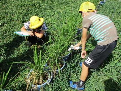 今日は全校出校日でした。約2週間ぶりに学校へ来ましたが、みんな元気な様子を見せてくれました。日誌の丸つけや、バケツ稲の観察をして過ごしました。