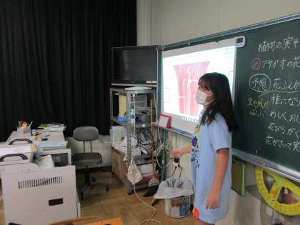 理科では、植物の実や種子のでき方について学んでいます。