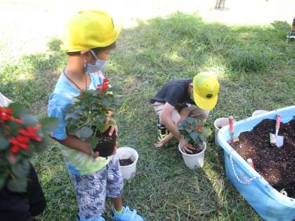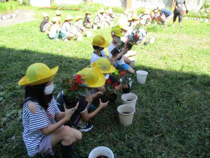 今日は朝から1時間目にかけて、花いっぱい運動を行いました。感染症予防のため、例年とは違う方法でサルビアを植えました。運動会で学校を飾る花となるように明日から水やりをしてしっかり花を咲かせたいと思います。