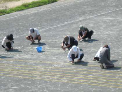 今日は、運動場のコースロープの張り替え作業を行いました。