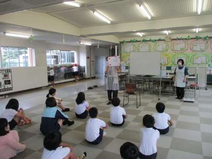あわあわゴッシーの歌に合わせて丁寧に手洗いの確認をすることができました。