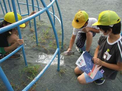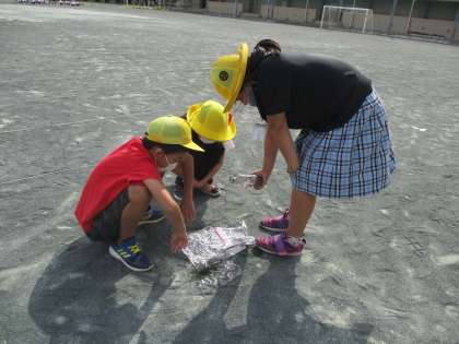理科では「雨水のゆくえ」の学習に入りました。雨が降った後の運動場の様子から疑問を見つけ、調べていきます。今日は、水はどのように流れるのだろうかという問題を解決しました。サランラップを用いて、高い所から低い所へと水が流れていく様子を観察し、流れる水の行方について理解することができました。