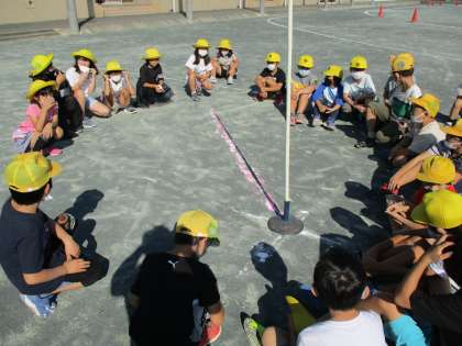 運動場にぼうを立てて、そのぼうのかげに印をつけ、時間がたつとかげの位置がどのように変わるかを予想し、太陽の動きについて考えることができました。