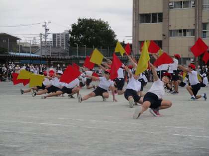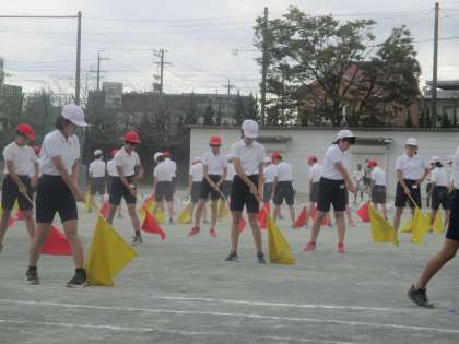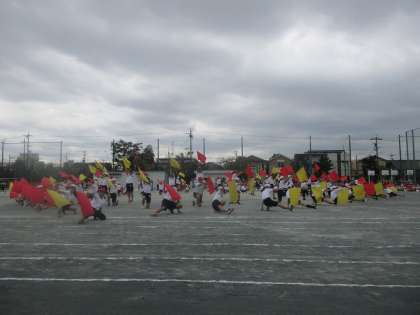 今日は、小学校生活最後の運動会でした。全員が、大きな動きと、迫力ある旗の音を意識して、堂々とした演技をすることができました。向山小学校の最高学年として、最高の演技」を目指して練習を頑張ってきた子どもたちの努力が実を結んだ演技だったように思います。徒競走では、最後まであきらめず走りきる姿が立派でした。途中、バランスを崩してしまった子も直ぐに立ち上がってゴールめがけて懸命に走る姿が印象的でした。