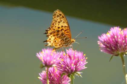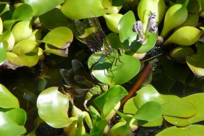 ホテイアオイやハスの花も盛りを迎え、そこへシオカラトンボにギンヤンマ、可憐なチョウチョもやってきて、いずみは今とてもにぎやかです。