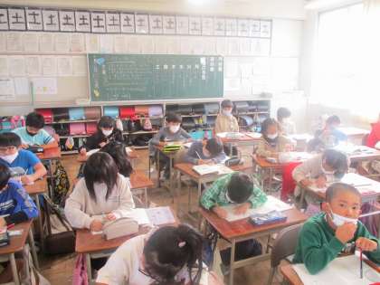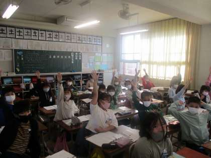 今日は修飾語について勉強しました。文章をより具体的に、わかりやすいものにするために不可欠な修飾語、どんどん気づいたことをノートに書き、修飾語を使った文を発表できました。