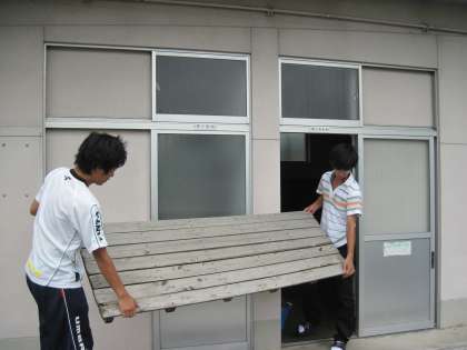 夏休み中に楽しんだプールを、先生たちで片付けました。