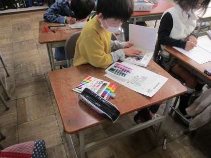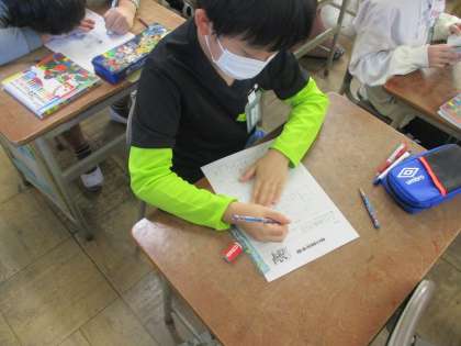 今日は昨日の校外学習の振り返りを行いました。楽しかったことや興味を持ったことなどが文章や絵にどんどん表れてきてとても思い出に残ったことがわかりました