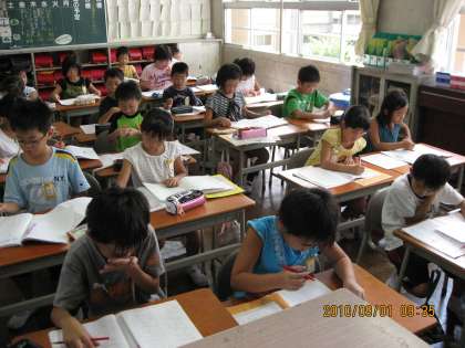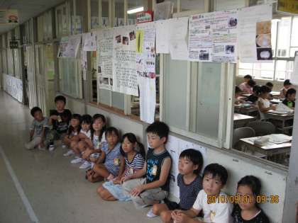 残暑厳しい中、2学期がスタートしました。3年生の子どもたち、元気に教室に帰ってきました。本日は、教室で日誌の答え合わせをしたり、自由研究の作品を掲示したりしました。