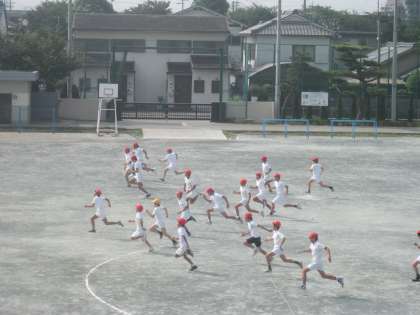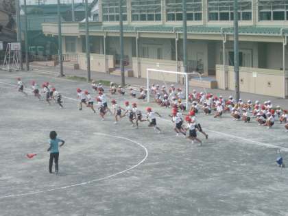 運動会の練習が始まりました。今日は、紅白のリレーを決め、どの子も一生懸命走りました。